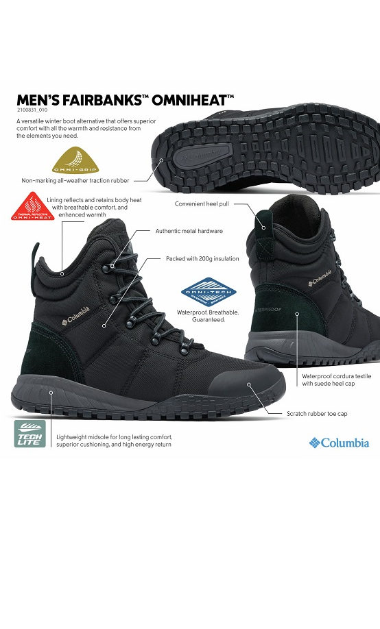 Columbia vyriški žiemos batai Fairbanks™ Omni-Heat™- vandeniui nepralaidūs ir kvėpuojantys batai su šilumą atspindinčiu pamušalu yra sukurti taip, kad Jūsų kojos išliktų šiltos ir sausos.
