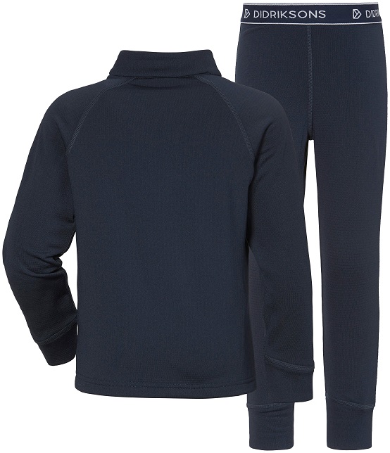 Didriksons Jadis Kids Set 5 komplektuką sudaro viršutinė dalis su užtrauktuku ir ilgos kelnės, kurios gali būti dėvimos atskirai arba kaip minkštas pagrindo sluoksnis. Puikiai tinkamas dėvėti kaip laisvalaikio drabužius vėsiu oru arba kaip papildomą sluoksnį po striuke ar kombinezonu šaltesnę dieną. Komlektukas greitai džiūsta, bei greitai garina drėgmę, dėl to puikiai tiks vaikui užsiimant aktyvesne veikla.